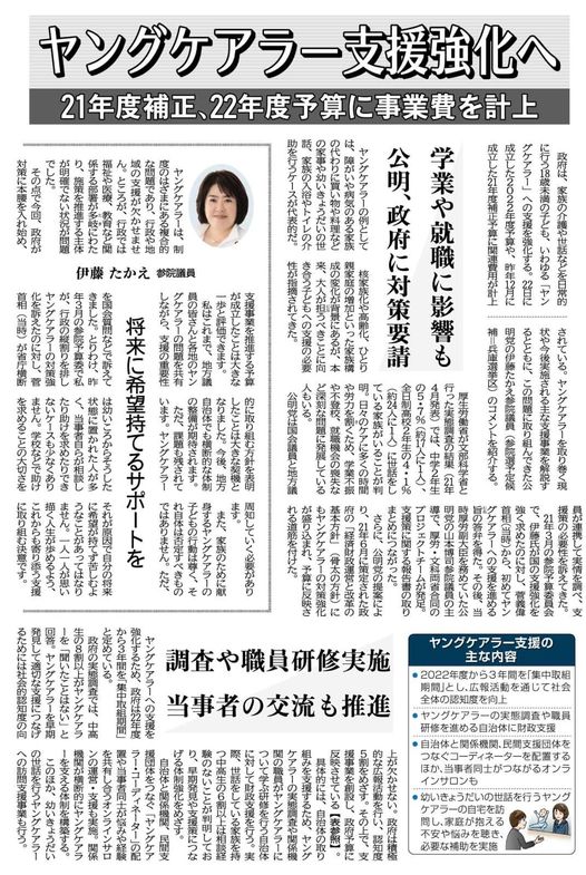 ヤングケアラー支援強化へ‼️21年度補正、22年度予算に事業費を計上