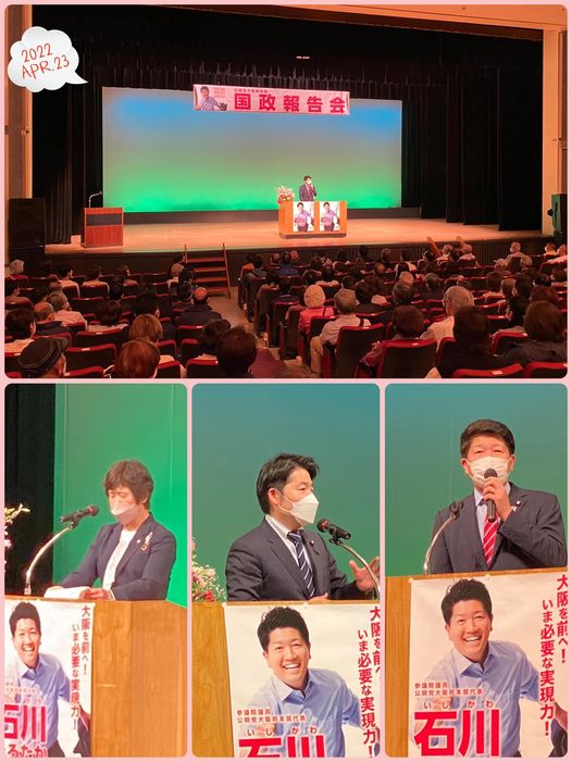 4月23日(土)今日は、四條畷市民総合センターにて「公明党大阪府本部 国政報告会」を開催。週末の夜にもかかわりませす、多くの皆さまにお越しいただき感謝申し上げます。#いさ進一衆院議員、#石川ひろたか参議院議員 をはじめ、市と府と国のネットワーク力を生かし、これからも様々な施策の実現に取り組んでまいります!