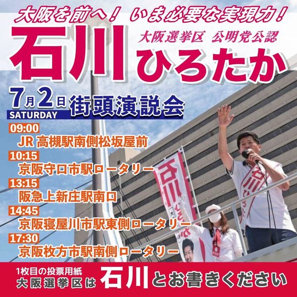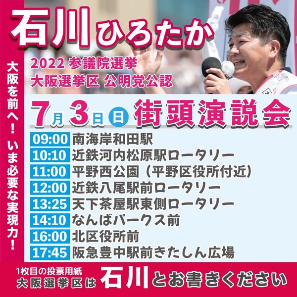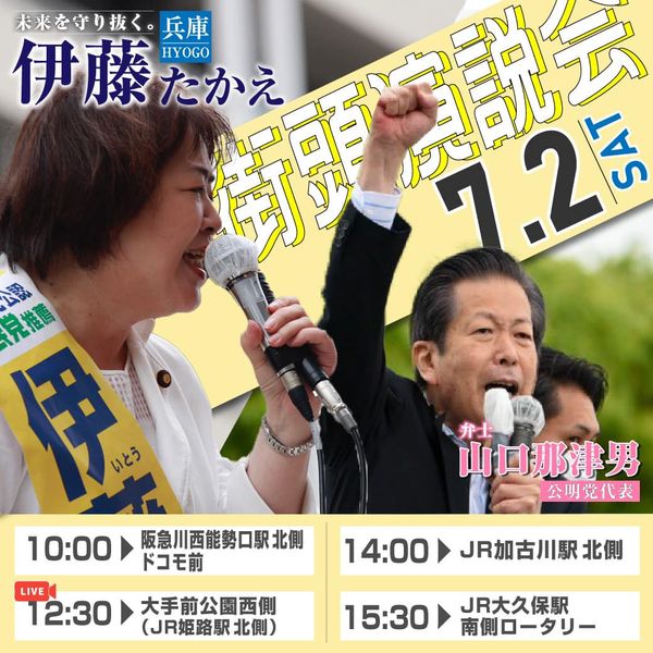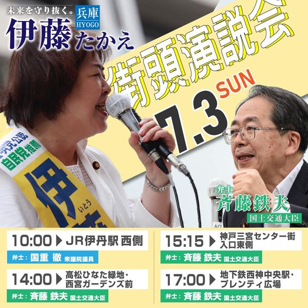 7/2、7/3 今週末の街頭演説のお知らせです‼️お近くにお越しの際は、ぜひお立ち寄りください❣️猛暑日が続いておりますので、熱中症にはくれぐれもお気を付け下さい(^^)❣️