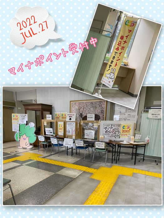 7月27日(水)四條畷市役所1階にて、マイナポイント申請窓口を設け、手続きの支援を行っております(^^)/連日、たくさんの方にお待ちいただいていますが、今日は、土砂降りの雨が降ったりと天候不順の影響もあったのか、閑散としていました。