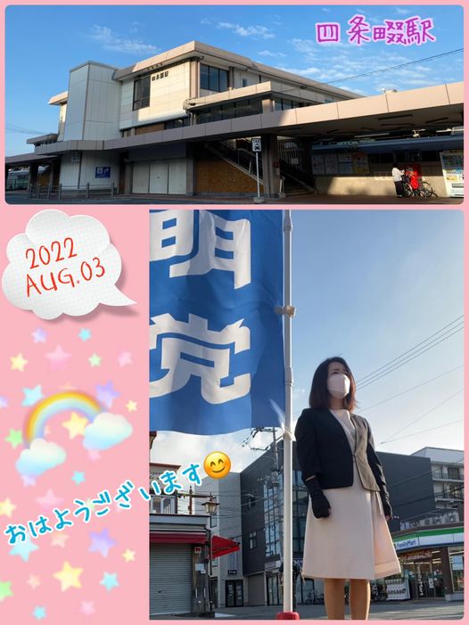 8月3日(水)今日は四条畷駅にて朝のご挨拶からスタート。朝から日差しが痛く感じるほどです💦今日も猛暑の1日となりそうです。水分・塩分補給しながら、熱中症対策を万全に‼️今日も元気にいってらっしゃいませ😊🤚