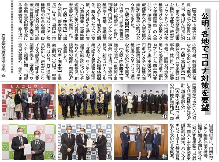 本日の公明新聞に、東修平市長へ新型コロナウイルスワクチンの接種体制構築に関する要望書提出の記事が掲載されました。