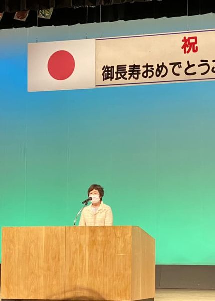 来賓としてうつみ久子府議会議員が挨拶。フレイル予防についてお話をしていただきました。御長寿の皆さまのようにお元気で長生きできるよう、日々のフレイル予防がとても大切です(^^)??