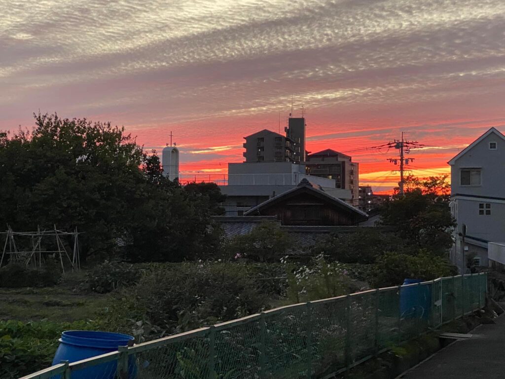 10月11日(火)週始めの今日は、朝から団会議。夕方まで市役所での事務仕事。自転車での帰り道、綺麗な秋の夕焼けに癒されました(^^)❣️