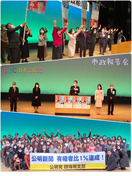 12月4日(日)今日は、杉ひさたけ参議院議員を迎え、四條畷市民総合センターにて『市政報告会』を開催させていただきました。多くの党員・支持者の皆様にご参加いただき、公明新聞の有権者比1%達成の記念撮影もさせていただきました📸ご来賓として、東修平市長も駆け付けてくださり、明年の大勝利に向け、決意あふれる出陣の大会となりました。お忙しい中、駆けつけてくださった皆さま、ありがとうございました(^^)