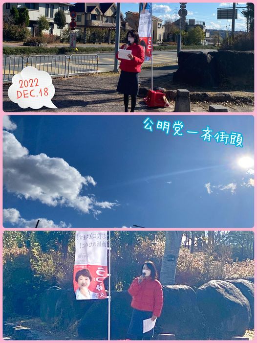 12月18日(日)今日は、北谷公園にて公明党一斉街頭を行いました🎤風が強くてのぼりが倒れたり、途中、マイクの調子がおかしくなったりと何度も仕切り直しながらの街頭となりました💦車からお手を振っていただくなど、寒い中のご声援ありがとうございました😊