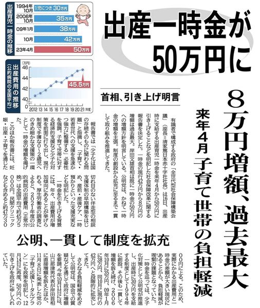 出産一時金が50万円に‼️