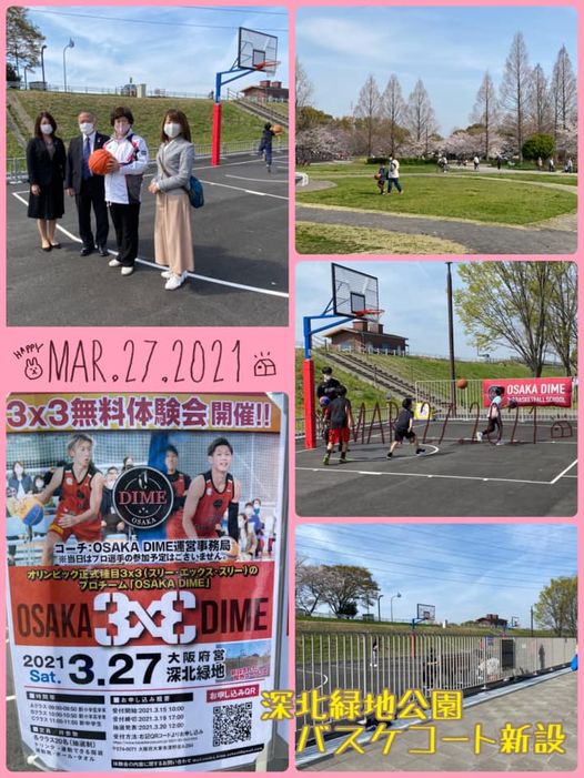 深北緑地公園に3人制のバスケコ-トが新設されました❗️うつみ府議会議員がこれまで、学生や子どもさん、保護者の方々からの要望を受け府へ声を届けてくださり、整備をして頂きました。今日はうつみ府議会議員と市議団で見学に行ってきました。今日は、イベント開催。小さな子供さんや、明日、バスケの試合がある中学生に丁寧に指導されてました。いつでも自由に利用でき、今日もたくさんの皆さんが楽しんでおられました⛹️♀️⛹️♂️ぜひ、ご利用下さい🏀