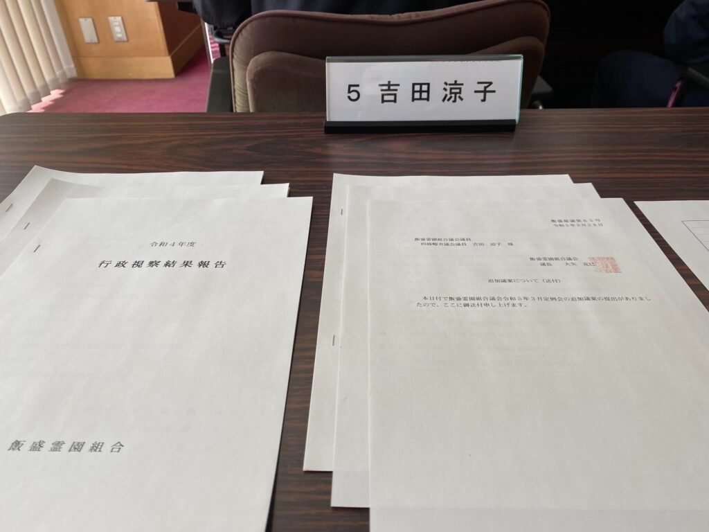 3月28日(火)今日は、飯盛霊園組合議会3月定例議会。1年間、派遣議員としてお世話になりました。議案10件、議員提出議案1件、同意案件3件の審議が行われ全て可決されました。飯盛霊園は桜満開です🌸お近くにお越しの際はぜひお立ち寄りください^ – ^