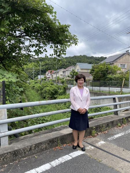 今日は、午前中 #うつみ久子 府議と一緒に田原台へご挨拶。以前からいただいている草刈りのご要望も一緒に現場を確認していただきました。