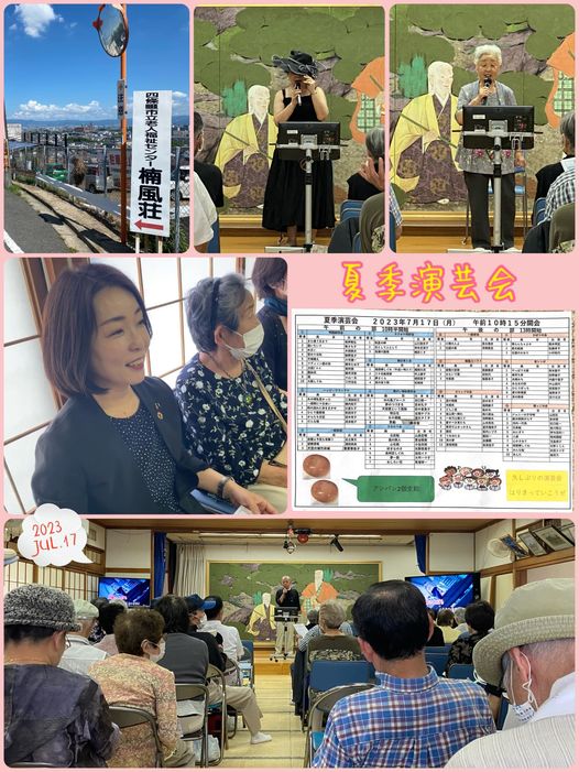 7月17日(月)今朝は、現在、#楠風荘 で開催中の「夏季演芸会」におじゃまさせていただきました🎤^ – ^4年ぶりの開催に、皆さん素敵な衣装で日頃の成果を披露されておられます。会場もいっぱいでした😊久しぶりの #演芸会、皆さん楽しんでください❤️