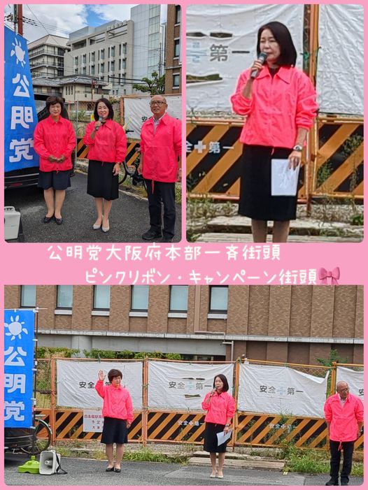 10月1日(日)今日は、#公明党大阪府本部一斉街頭&「#ピンクリボン🎀キャンペーン街頭」を #うつみ久子 府議、#わかまつ正治 市議と一緒に、#四条畷駅 にて開催