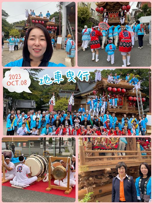 10月8日(日)今日は、#秋まつり地元清滝の #地車曳行 に参加させていただきました。4年ぶりの曳行。朝早くから皆さん気合い十分‼️9時に #国中神社を出発。お昼は #忍ヶ丘駅 岡山地区、砂地区が集結。途中、かなりの雨にうたれながれも、小さな子どもさんもあきらめずに最後まで引っ張ってくれて、無事に帰ってくることができました^ – ^✨地車保存会の方をはじめ役員の皆さま、本当にお疲れ様でした😊❣️