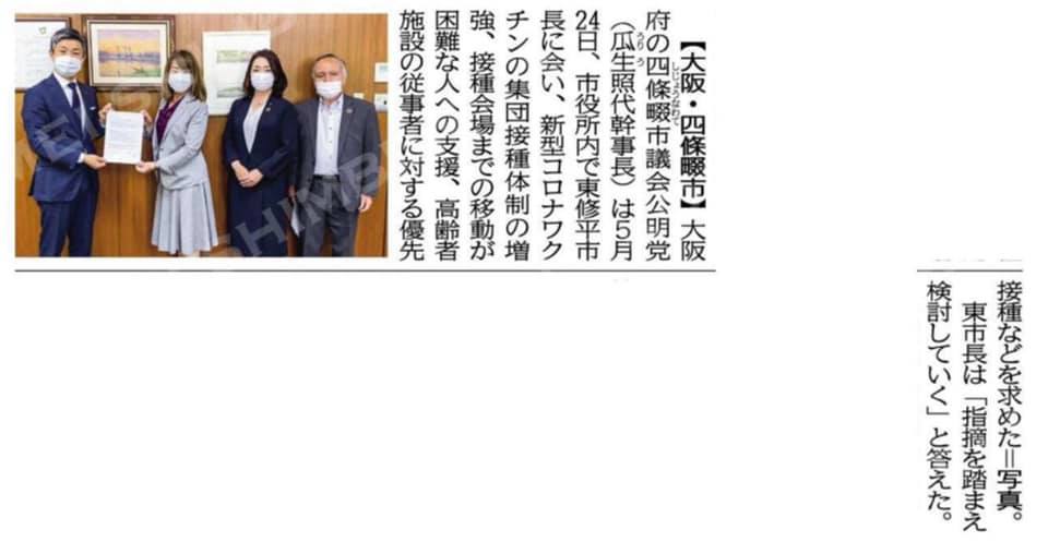 本日の公明新聞に、東市長へ7回目となる緊急要望書を提出した記事が掲載されました。6/9からいよいよ始まる集団接種。市民の皆さまが安心して接種していただけるよう、今後もしっかり取り組んでまいります。