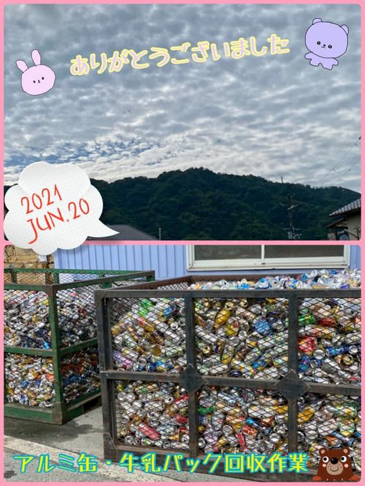 今日は第3日曜恒例の『四條畷市を美しくする会』の皆さんとアルミ缶・牛乳パックの回収作業のお手伝い😊カゴの中のアルミ缶は、いつもより多くなりました。急に暑くなったことや、家飲みが定着しているのかなと話しながらの回収となりました。お疲れ様でした(^^)/いつも提供してくださる皆さま、今月もありがとうございました❣️