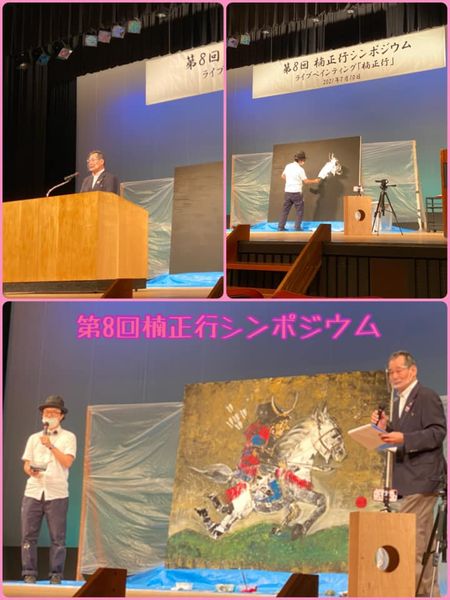 四條畷市PR大使の絵本作家の谷口智則さんが、飯盛山を白馬にまたがり駆け抜ける楠正行を目の前で短時間の間に、見事に描いて下さいました‼️その間、四條畷楠正行の会の扇谷代表が楠正行の時代背景など説明してくださり、とてもわかりやすく伝えて下さいました。昨年はコロナの影響で開催できず、その分、今年はとても力が入っているように感じました。関係者の皆さま、ありがとうございました。