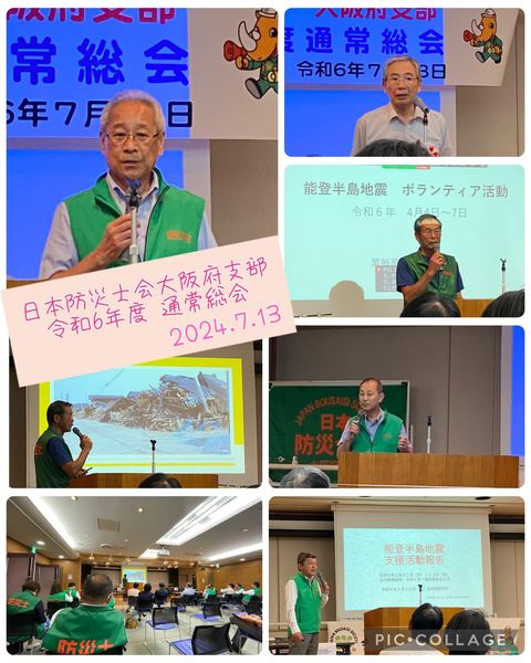7月13日(土)今日は、午後からなんばOCATにて開催の #日本防災士会大阪府支部 令和6年度通常総会へ出席。池添支部長のご挨拶から始まり、令和5年度の活動報告、会計報告、令和6年度予算案など6件の議案の審議が行われました。第2部では、#能登半島地震ボランティア活動 に参加された3名の活動報告。改めて災害は時を選ばない。行政にできる災害への取り組みの提案をこれからも進めてまいります。