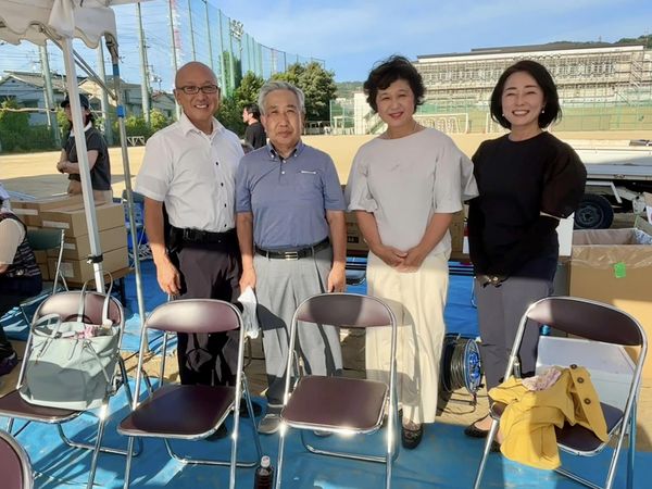 今年から雁屋地区、江瀬美地区合同で #四條畷高校 のグラウンドをお借りしての開催✨学生の皆さんがお手伝いをしていただき地域の皆さんと共に盛り上がっていました✨地域の区長さんとも意見交換をさせていただきました。暑い中、準備にあたってくださった役員の皆さまに感謝いたします❤️