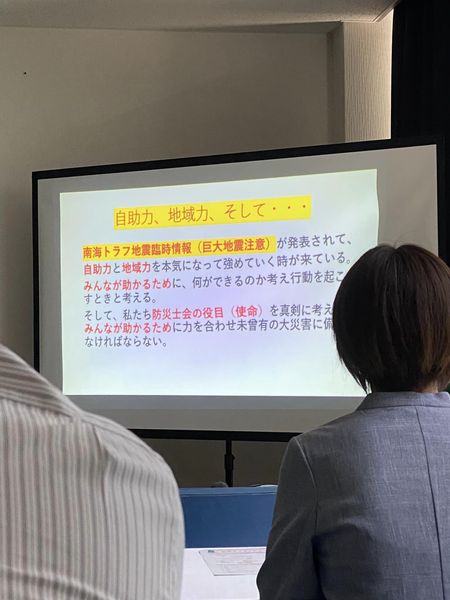 各エリアからの防災活動の報告、三島ブロック長の被災地でのボランティア活動、池添支部長の防災士に期待される活動と題し、防災士の使命と役割を学ばせていただきました。