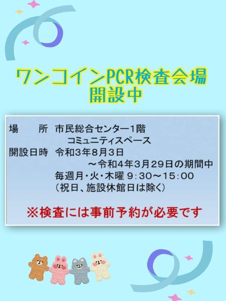 今日から四條畷市民総合センター1階にて「ワンコインPCR検査」が開設されました。