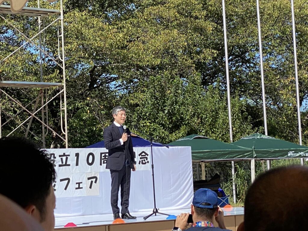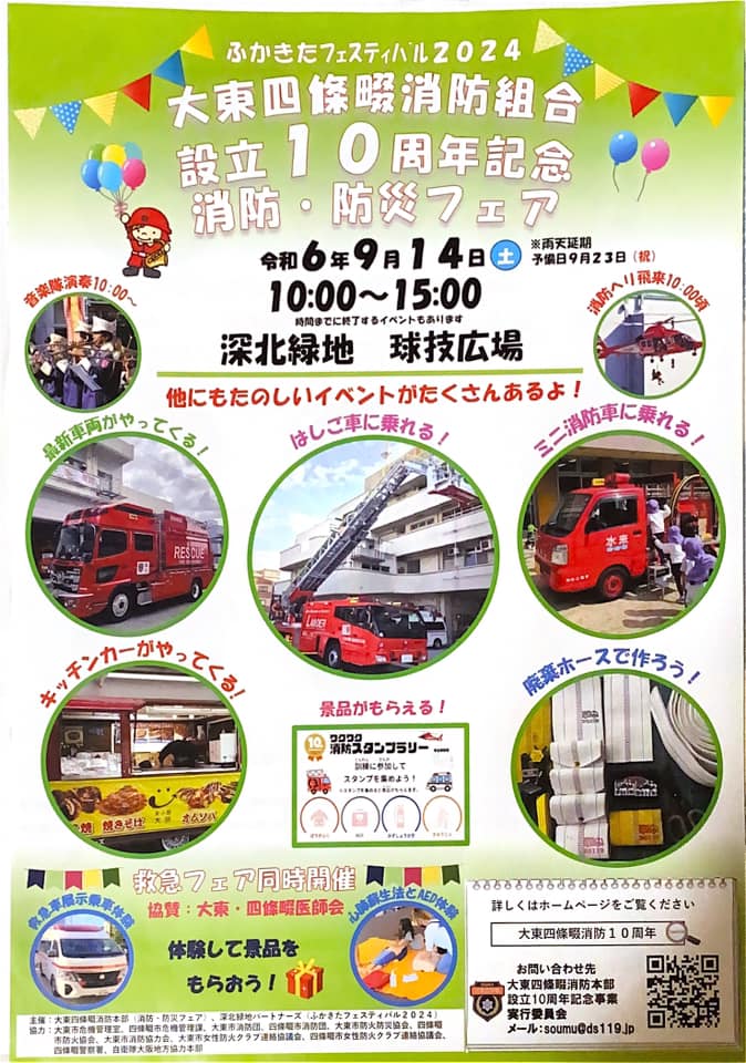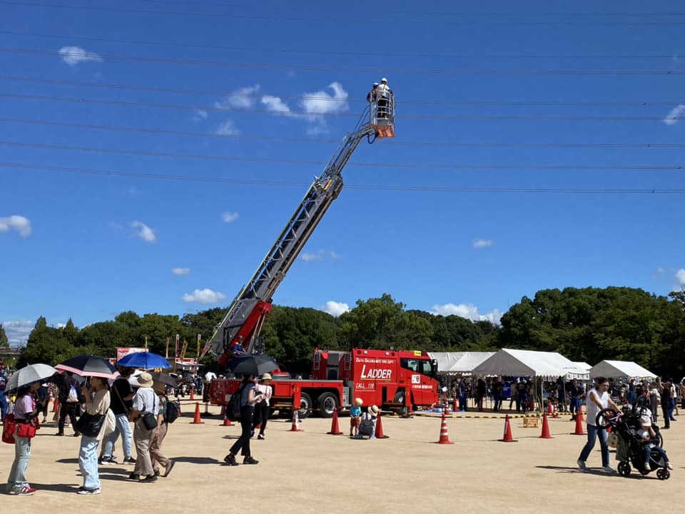 今朝は、#深北緑地 で開催の #大東四條畷消防組合設立10周年記念消防・防災フェア へ。10時から特設ステージにてオープニング。体験・展示のブースが並び、はしご車搭乗体験などもありたくさんの皆さんで盛り上がっております。かなりの暑さとなっていますが、熱中症対策を行っていただき、お近くにお越しの際を、是非お立ち寄りください😊🤚
