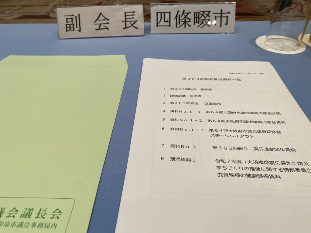 11月1日(金)今日は、#シティプラザ大阪 で、第303回 #大阪府市議会議長総会 が開催されました。報告案件・協議案件の協議後、「国の負担で恒久的な小・中学校給食に無償化を求める書」を、国会議員へ提出しました。