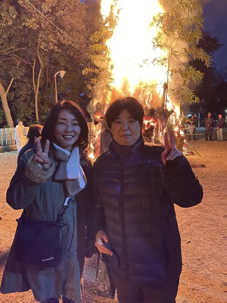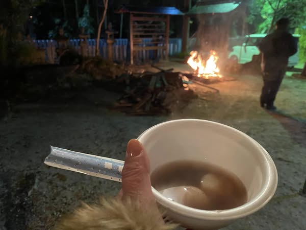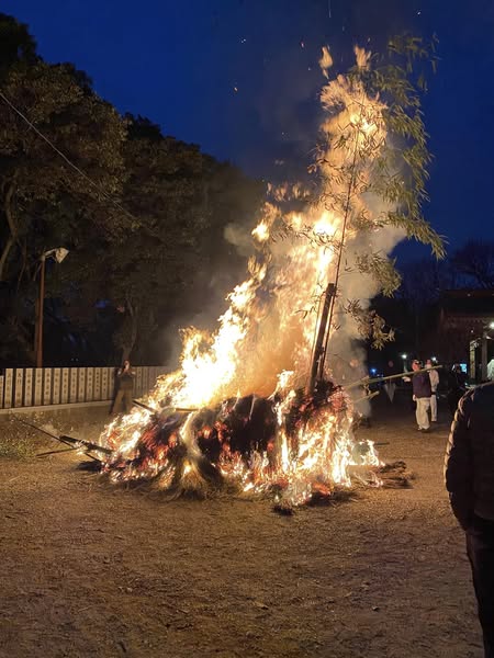 今日は、#国中神社 にて #とんど が開催役員の皆さんとぜんざいと御神酒のふるまいのお手伝い^ – ^🤚今年も恒例の年男・年女の皆さんが点火🔥家内安全・ 無病息災 を祈願しました。