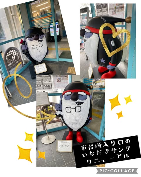四條畷市役所入り口 の #いなだまサンタ がリニューアル🎅