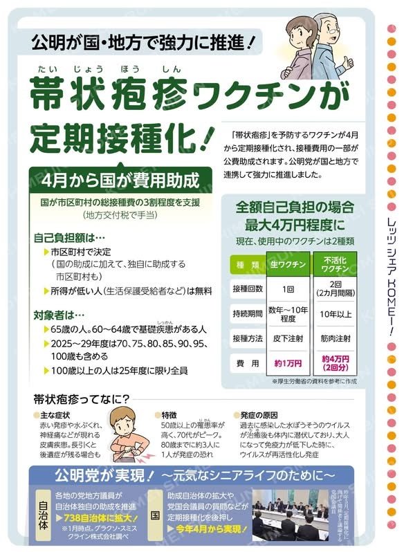 昨年12月の一般質問でも取り上げましたが、たくさんの皆さまからご要望があり、市議会公明党として毎年の予算要望を行い、また四條畷市議会としても国へ要望してきた #帯状疱疹ワクチン