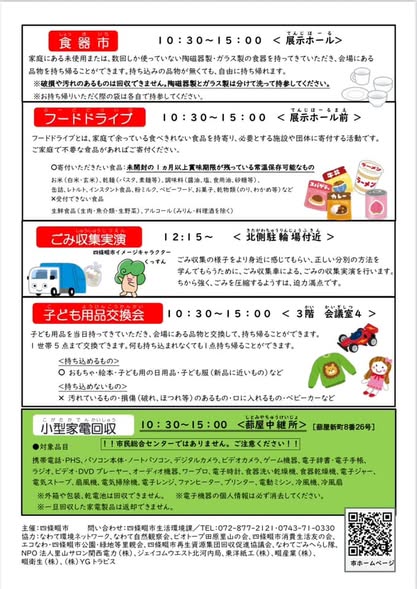 フードバンク #食器市 #子ども用品交換会 など、市民の皆さんに環境問題に対する関心を持っていただきたいとの思いで開催いたします。