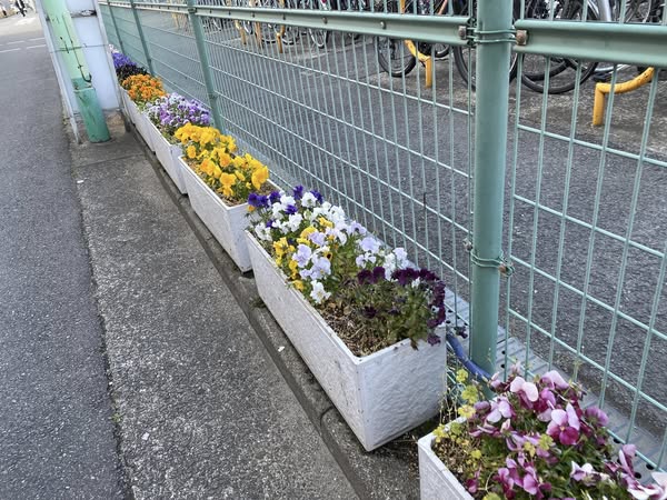 駐輪場の周りの花壇には色とりどりのパンジーが咲き誇り、また学生さんの笑顔のご挨拶に朝から元気をいただきました😊💕
