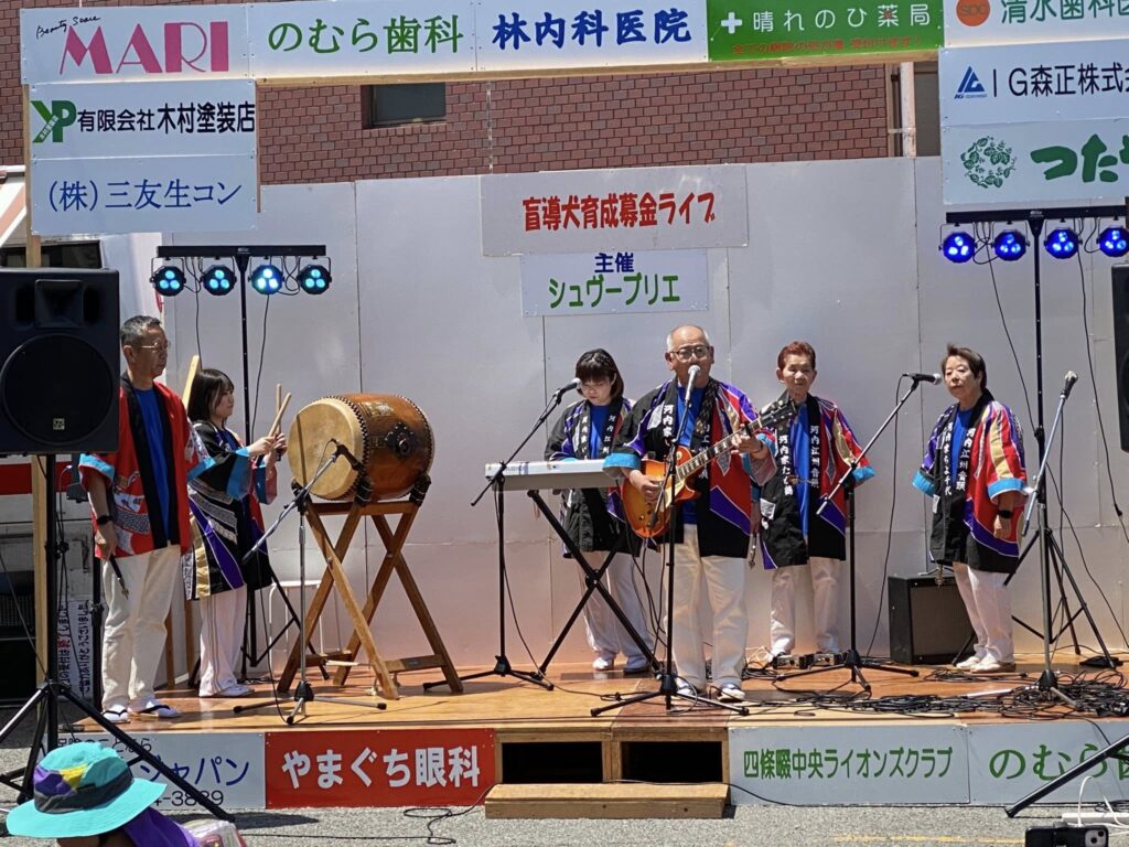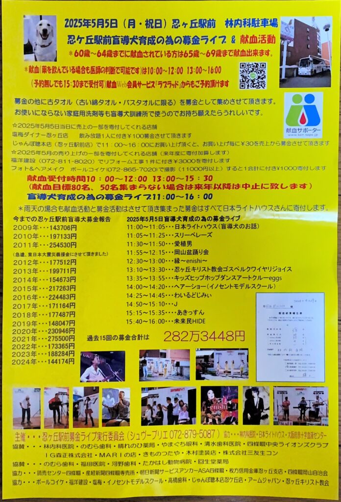 今日は、今年も開催の #忍ケ丘駅前盲導犬育成の為の募金ライブ & #献血活動 に行ってきました。去年、献血の予約を入れていたのに風邪を引いてしまい出来なくて、今回、無事に9回目の献血🩸を💕舞台では、岡山盆踊り会の皆さんが盛り上げておられ、16時までたくさんの皆さんのライブで盛り上がります。皆さま、お近くにお越しの際は、献血もあわせて、お立ち寄りください😊💕