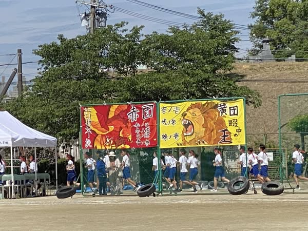 四條畷中学校体育大会雨予報を覆し見事な晴天に☀️元気いっぱいの声援が📣グラウンドに響き渡っています^ – ^勝っても負けても最後まで諦めずに頑張ってください😊👍