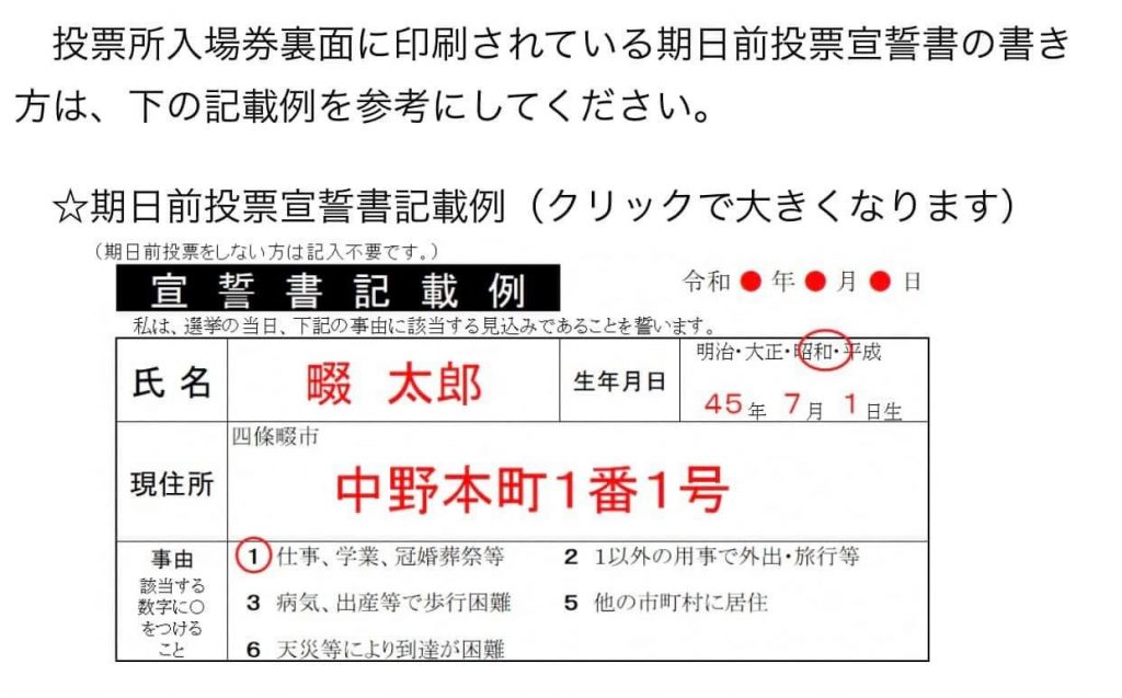 市議会公明党・小原達朗議員が何度も取り上げ、四條畷市では、令和2年12月より投票所入場券裏面が期日前投票宣誓書となりました‼️