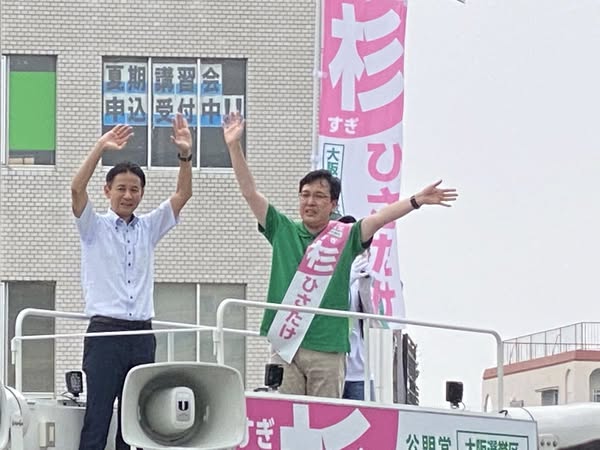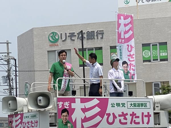谷合正明参議院議員も応援に駆け付けていただきました。厳しい暑さの中、たくさんの皆さまが「#杉ひさたけ、がんばれ‼️ 」と応援にお越しいただき、感謝の思いでいっぱいです❤️物価高騰対策を公明党は、減税も給付を全力で推し進めると力強い訴えがありました。大阪選挙区 #杉ひさたけ比例区 #つかさ隆史皆さま温かいご支援、何卒よろしくお願いいたします。