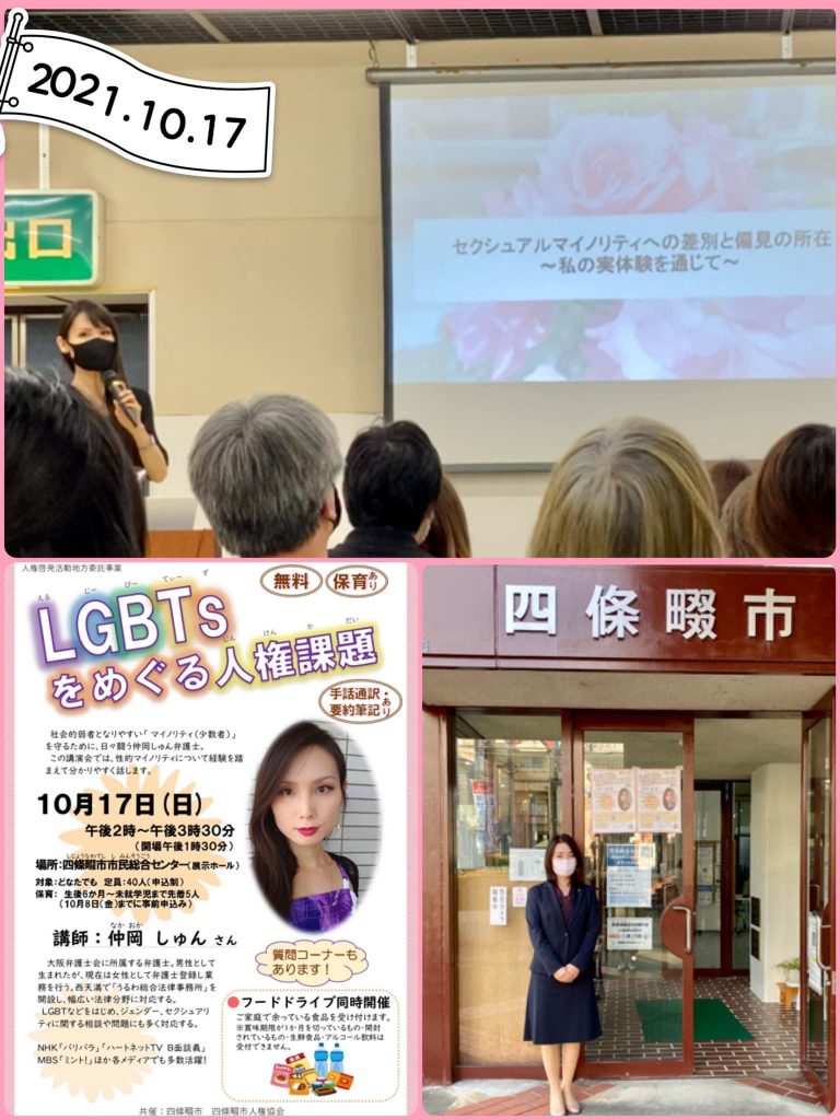 午後から四條畷市市民総合センターで開催された、メディアでもご活躍中の仲岡しゅん氏を講師に「LGBTsをめぐる人権課題」と題した講演に参加させていただきました。とてもわかりやすくお話ししてくださり、勉強になりました✏️終了後、地域の方へのご挨拶に😊❣️今日から急に寒くなり🍃自転車での移動は寒かったです(>_<)あっという間に冬支度が必要な季節になりそうです🥲