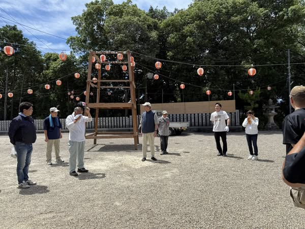 7月27日(日)今日は、地元清滝で来週開催の盆踊りのやぐら組のお手伝いへ。国中神社に9時集合。朝から炎天下の中、熱中症対策万全にスタート。青年部もたくさん参加し、皆で汗だくになりながら、無事に完了👍お疲れさまでした✨来週の盆踊り、楽しみにしています♪