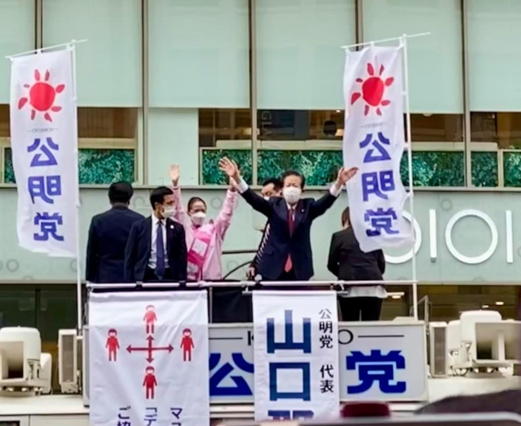 山口代表から、公明党の重点政策の3本柱「子育て・教育」「経済再生」「感染症対策」と未来応援給付等の具体的な政策のお訴えがありました‼️