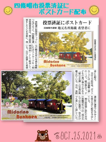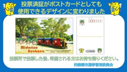 10月31日執行の衆議院議員総選挙から、投票済証がポストカードとしても使用できるデザインに変わりました(^^)❣️