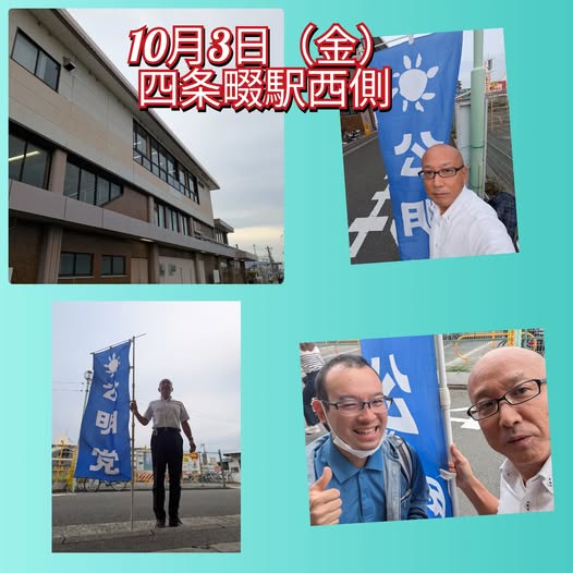 今朝は、四条畷駅西側にてご挨拶させて頂きました。涼しい朝でしたね。