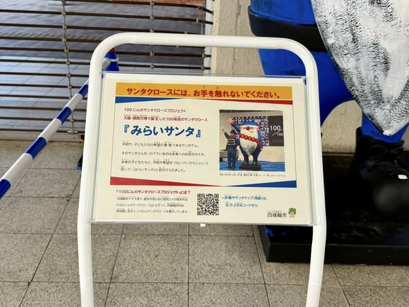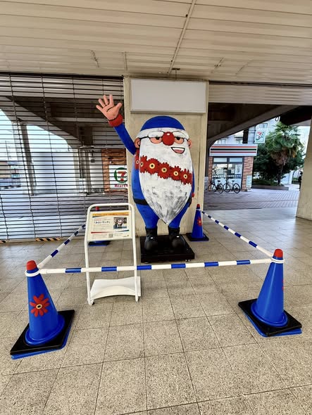 今朝は、#忍ケ丘駅 にて朝のご挨拶(^^)/絵本作家の #谷口智則 さんの大阪・関西万博で誕生した100体目のサンタクロース「みらいサンタ」が駅前からお見送りとお出迎えです🎅今日もたくさんの皆さまとお会いできました😊💕週末の金曜日今日も元気でいってらっしゃいませ😊🤚