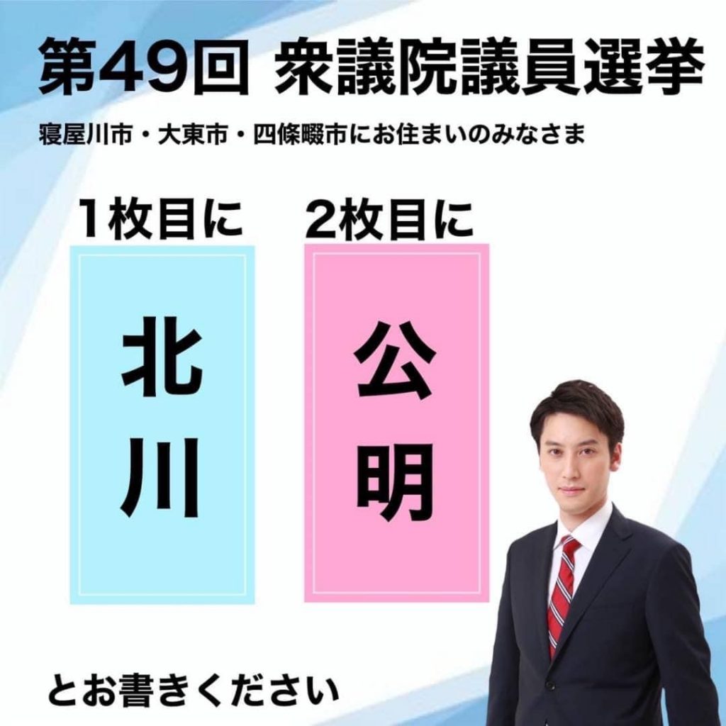 10月30日(土)衆院選最終日、ダイエー四條畷店前にて大阪12区自民党公認・公明党推薦の#北川晋平 候補より皆さまへ最後のお願いの街頭演説🎤可愛い御声援もいただき、最後のお訴えを‼️明日の投票日には大阪12区(寝屋川市・大東市・四條畷市)の皆さま1枚目(選挙区)は「#北川晋平」2枚目(比例区)は「#公明党 」とお書きください❣️最後の最後まで、皆さまのご支援心よりお願い申し上げます‼️