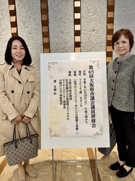 今日は、フェニーチェ堺で開催の大阪府市議会議員研修会へ参加。「医学のレジリエンス〜みらいへの挑戦と貢献〜」と題し、大阪大学特任教授/大阪けいさつ病院院長の澤芳樹氏による講演を拝聴。心臓再生医療のパイオニア。「心臓はひとときも休まず動き続ける、神秘的な臓器」との表現が印象的でした✨