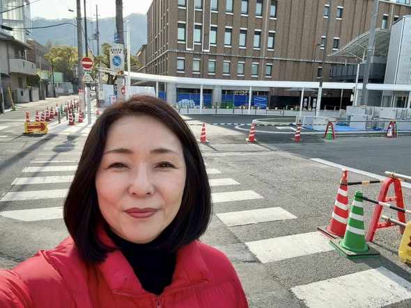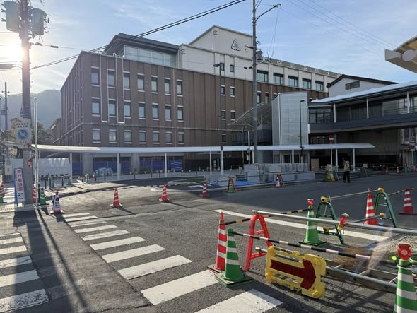 駅前のロ開発工事がかなり進みロータリーが出来上がってきました。#四條畷学園 の間の道は4月13日より通行止めとなります。ご注意下さい⚠️