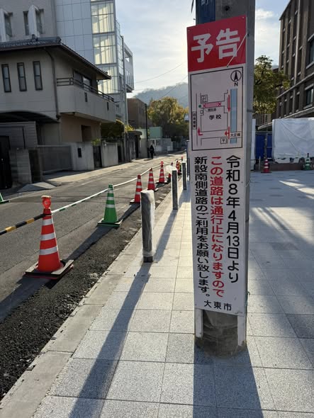 四條畷学園 の間の道は4月13日より通行止めとなります