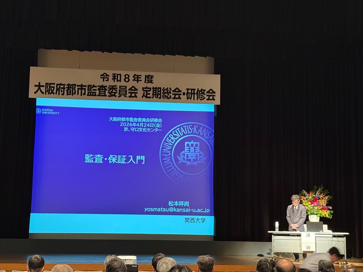 1部では議事報告及び審議報告が行われ、2部では講師に関西大学大学院会計研究科の松本祥尚教授をお迎えし、「監査・保証入門」と題した研修会が開催されました。
