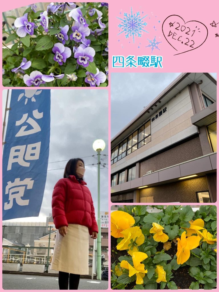 12月22日(水)おはようございます😊今日は四条畷駅にて朝のご挨拶。たくさんの方が会釈をしてのご挨拶をしてくださり、お声も掛けていただきました❣️皆さま、お気を付けて行ってらっしゃいませ😊🤚