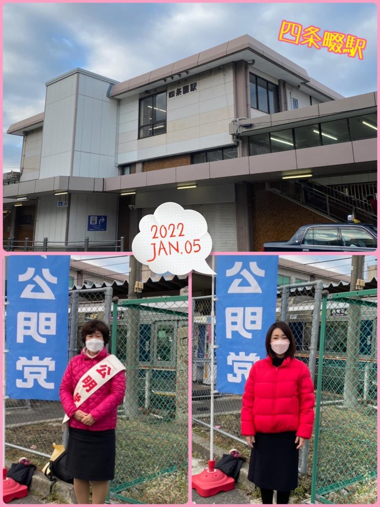 1月5日(水)おはようございます😊今年はじめての朝のご挨拶を、うつみ久子府議会議員と一緒に四条畷駅より行いました(^^)/たくさんの皆さまに新年のご挨拶もさせていただくことが出来ました。本年もどうぞよろしくお願い致します❣️