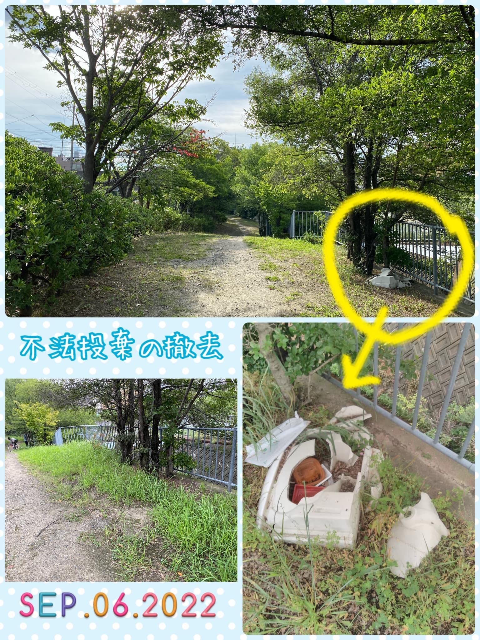 9月6日(火)今日、担当課から中野フタバクリーニング西側の散歩道への不法投棄の撤去完了の連絡をいただきました😊安心してお散歩していただけます(^^)✨