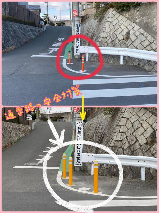 3月13日(日)四條畷小学校への通学路。ゴム製の注意喚起ポールが2本設置されておりましたが、横断歩道前の停止場所でもあり、もしもの事故に備え、鉄製の物にできないか!とのご相談を受け、建設課へ。それから…